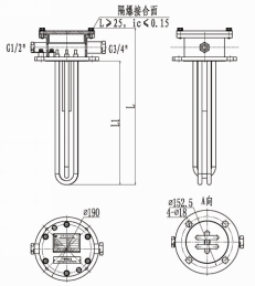 加熱介質(zhì)為液體時,元件的有效長度應(yīng)當(dāng)全部浸在液體中。元件發(fā)熱部份應(yīng)與容器壁有一定距離,一般為50—60mm以上。