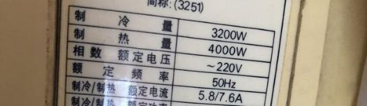 我們可以直接看1.5匹的空調(diào)的銘牌,空調(diào)銘牌上面都有空調(diào)運行電流的標(biāo)注,例如,上圖中的1.5匹的某空調(diào)的銘牌,我們從銘牌上可以看到空調(diào)運行時的室外機最大電流就是7.6A,室內(nèi)機的電流是1.5A,那么最大總電流就是7.6A+1.5A=9.1A;