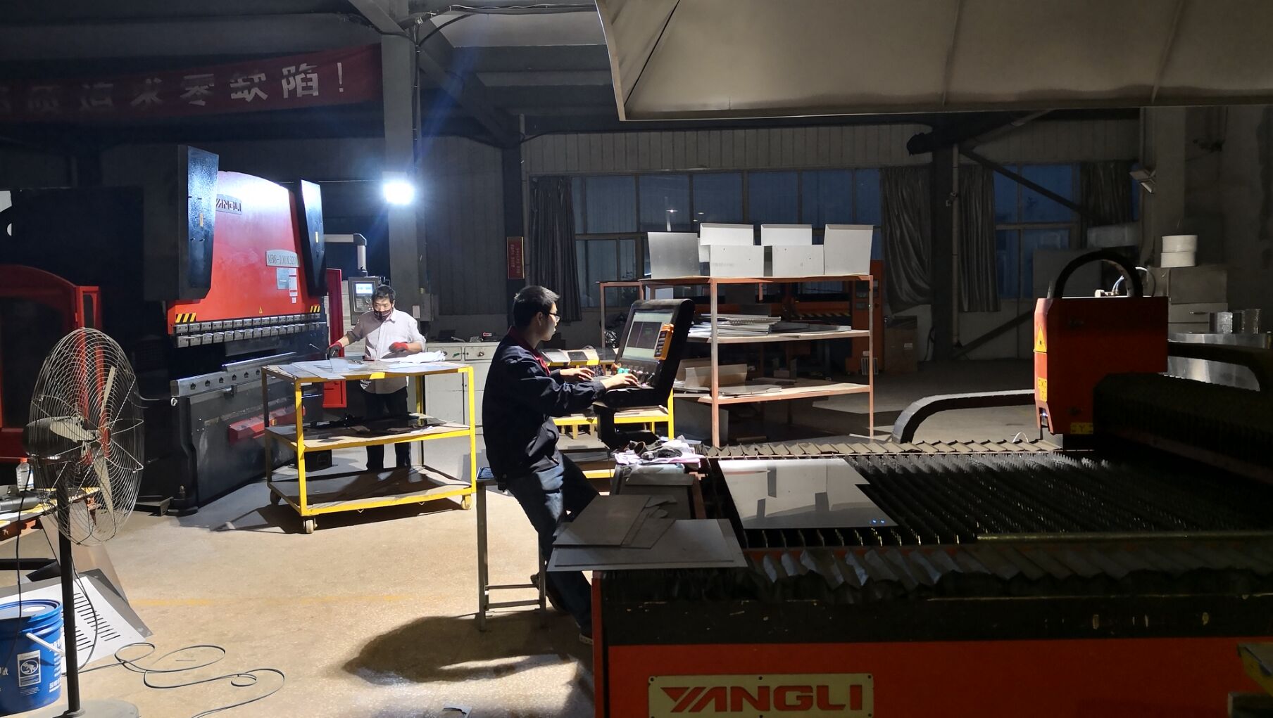 盡管天色已晚,領導和員工依然在廠區(qū)內商討產品細節(jié)問題。