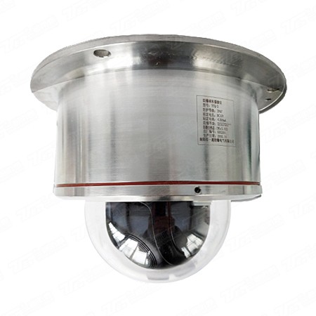 產(chǎn)品描述:l YTQ-3球形防爆攝像儀的設(shè)計(jì)滿足ⅡC氣體組以下(及可燃性粉塵等特殊的環(huán)境;l 其制造符合GB3836-2010標(biāo)準(zhǔn)的規(guī)定。采用科學(xué)的隔爆結(jié)構(gòu)達(dá)到IIC防爆要求;l 采用高性能步進(jìn)電機(jī),可以實(shí)現(xiàn)變速轉(zhuǎn)動0.1~250°/S準(zhǔn)確變速和定位,定位精度±0.1°。具備角度顯示功能;l 內(nèi)置控制解碼器,RS485控制方式,具備調(diào)用OSD菜單功能,實(shí)現(xiàn)遠(yuǎn)端快速控制和調(diào)整;l 具備1個出線孔,可使用防爆撓性管或防爆電纜進(jìn)行防爆電氣連接;l 內(nèi)置海康威視高速球機(jī)機(jī)芯,機(jī)芯規(guī)格:200萬像素20倍光學(xué)變焦,也可按要求定制;l 安裝方便,維護(hù)簡單?;⒘⒅?、塔架、抱箍多種方式安裝。